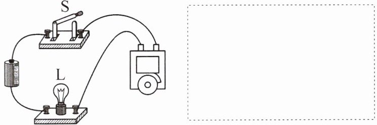5. 如图所示,是手电筒的实物图,请在虚线框内画出手电筒的电路图。