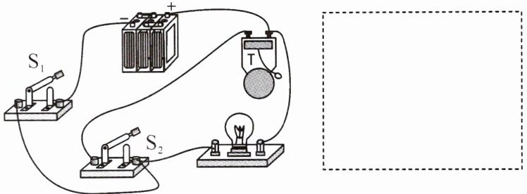 6. 根据实物图,在虚线框内画出对应的电路图。(电铃用符号“☏”表示)
