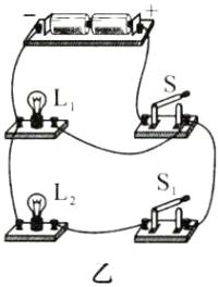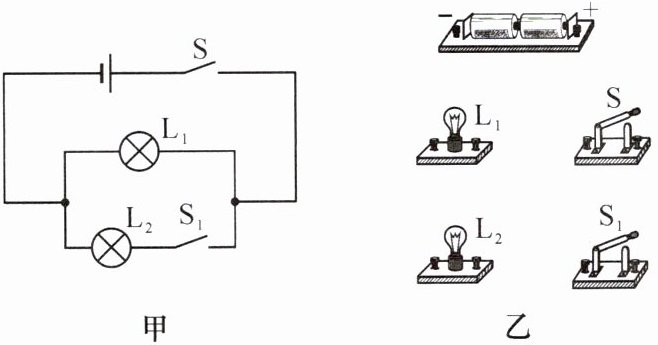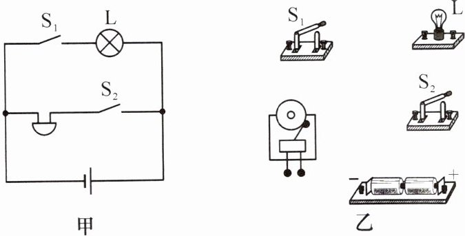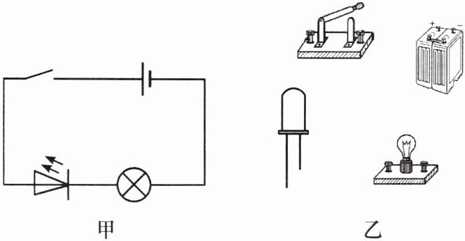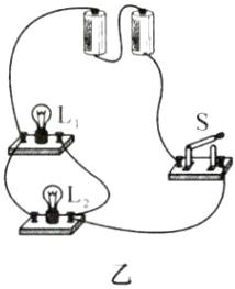 4. 根据电路图甲,请用笔画线代替导线连接实物图乙。