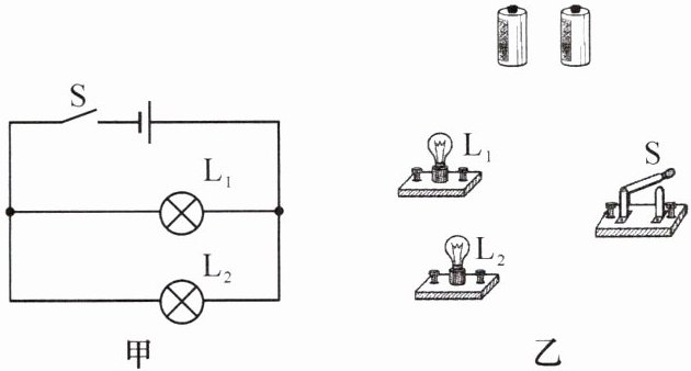 2. 请按电路图甲,用笔画线代替导线把如图乙所示的实物连起来。