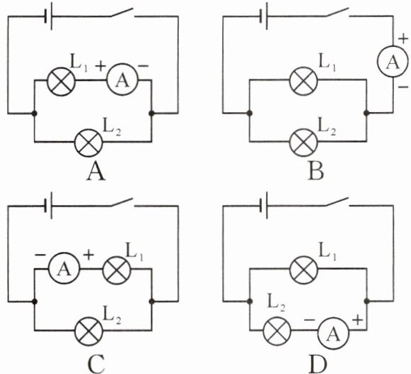8. 下列电路中能够直接测出通过灯L₁的电流的是(