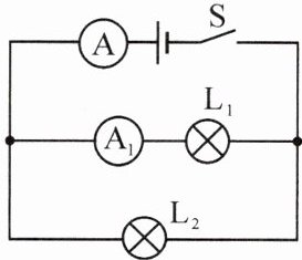 5. 在如图所示的电路中,闭合开关$S$后,电流表$A_{1}$的示数是$0.2A$,电流表$A$的示数是$0.45A$,则通过灯泡$L_{1}$的电流是