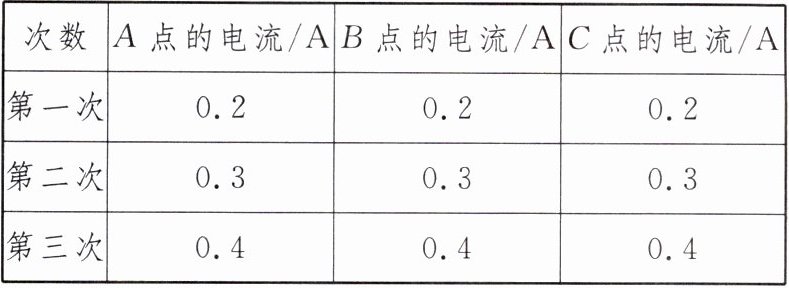 (3) 小名多次测量后得到下表中的数据,根据表中数据可得到串联电路中电流的规律是