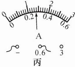 (2) 用电流表分别测量$A$、$B$、$C$三点的电流,更换灯泡多次测量,将实验数据记录在表格中,其中第$4$次实验中$B$点的电流如图丙所示,则$I_{B}=$