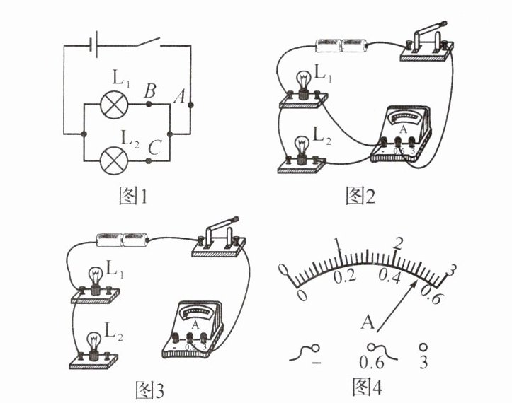 (填“A”“B”或“C”)处的电流,测量时电流表示数如图4所示,为0.52
