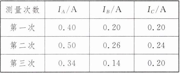 两端的导线,再拆除其他导线。另一小组测得A、B、C各点的电流值如表所示,可以得出结论:在并联电路中,干路中的电流等于各支路中的电流之和