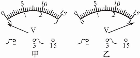 5. 小明在使用电压表测量电压的过程中,指针的偏转出现了如图所示的两种现象,请你指出其中的原因。