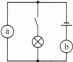 8. 如图所示,图中的a、b是电流表或电压表,闭合开关,灯泡正常发光,下列说法正确的是(