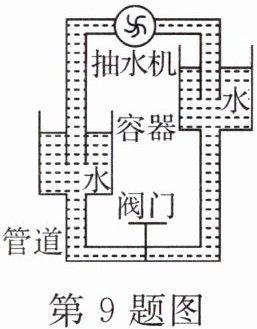 9. (双选)类比是研究物理问题的常用方法。如图所示,两容器中的水在抽水机的作用下不断从低处抽运到高处,从而在管道中形成了水流。可以将电路中形成电流的情境与上述情境做类比。下列类比合理的是(