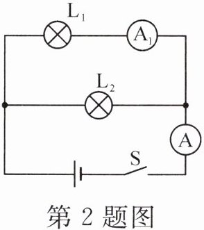 2. 如图所示,已知电流表A₁的读数为0.1A,电流表A的读数为0.3A,则通过灯L₂的电流为