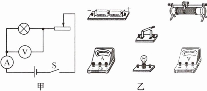 2. 根据如图甲所示的电路图,用笔画线代替导线,将图乙中的实物图连接起来。(小灯泡正常工作时的电流大约为 0.3 A)
