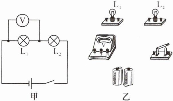 1. 根据如图甲所示的电路图,用笔画线代替导线,将图乙中的实物元件连接起来。(导线不可交叉,注意选择正确的测量范围)
