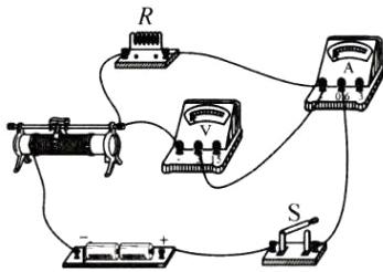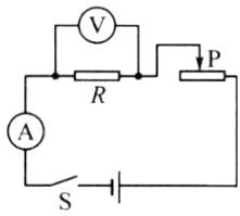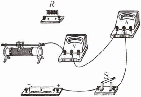 4. 用笔画线代替导线将电路补充完整,使滑动变阻器滑片向右移动时电阻增大,电压表测电阻 $ R $ 两端的电压。