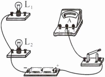 3. (2023·贵州)如图所示实物电路,请用笔画线代替导线按要求完成电路连接。要求:两灯并联,电流表测通过灯 $ L_1 $ 的电流,开关控制整个电路,导线不能交叉。