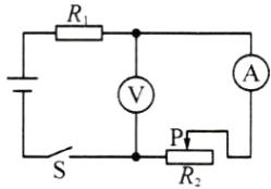 8. (2024·南阳卧龙区期中)如图所示,请将电源、电流表和电压表分别填入图中的空缺处。要求:闭合开关 $ S $,定值电阻 $ R_1 $ 与滑动变阻器 $ R_2 $ 串联,电压表测 $ R_2 $ 两端电压。