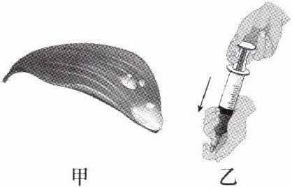 5. 如图甲所示,树叶上两滴水珠接触时,能自动结合成一滴较大的水珠,这一事实说明分子间存在