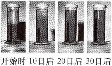 3. 【教材素材】如图,在量筒中装一半清水,用细管在水的下面注入硫酸铜溶液,可观察到无色的清水与蓝色硫酸铜溶液之间有明显的界面,静置10日后,界面变得模糊不清。这种现象叫作