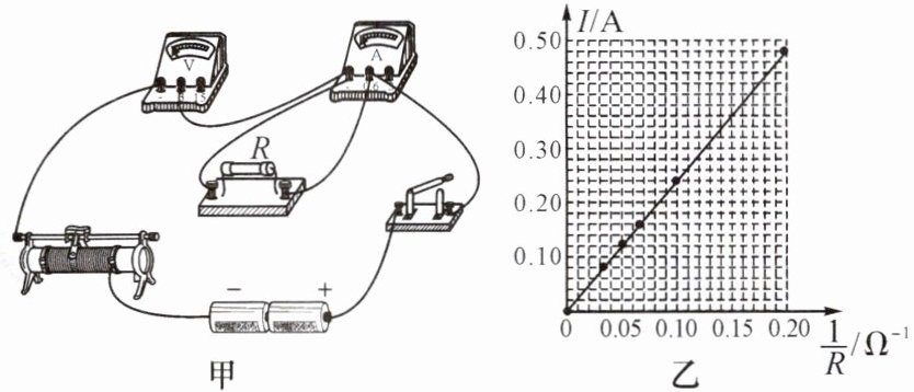 表示数。(4) 小明通过多次实验测得多组数据,并利用这些数据得到如图乙所示的电流$I$随电阻的倒数$\frac{1}{R}$变化的图像,由图像可以得到的结论是