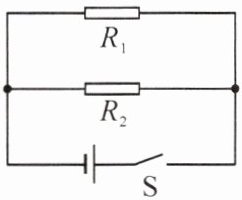 4. 如图所示的电路中,电阻阻值$R_1 < R_2$。开关$S$闭合后,$R_1$、$R_2$两端的电压分别为$U_1$、$U_2$,通过$R_1$、$R_2$的电流分别为$I_1$、$I_2$。下列判断正确的是(
