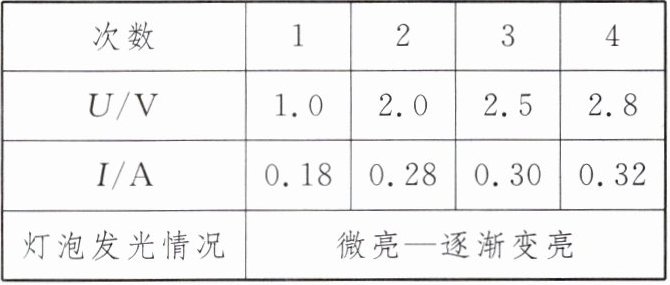 (3)分析表格中记录的实验数据,可知小灯泡正常发光时的电阻约为