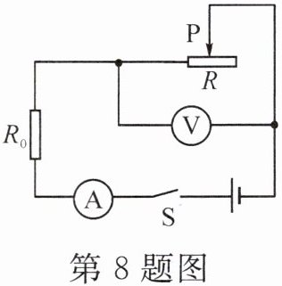 8. (双选)(2024·江西)如图所示,电源电压保持不变,开关S闭合,将滑片P向右移动,关于电流表和电压表示数变化情况,以下说法正确的是(