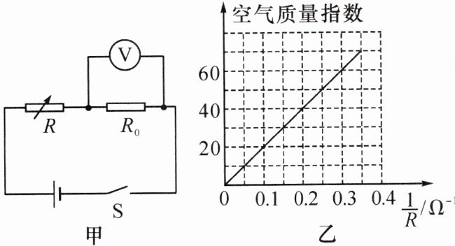 则1/R'=1/4 Ω=0.25 Ω⁻¹,由图乙可知空气质量指数为50。