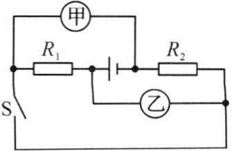 9. (2024·周口一模)如图所示,已知 $ R_{1} : R_{2} = 1 : 2 $,则当开关 $ S $ 闭合,甲、乙两表均为电压表时,$ R_{1} $ 与 $ R_{2} $