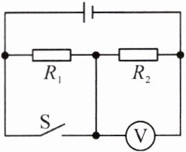$V $;当开关 $ S $ 断开时,电压表的示数变化了 $ 2 \, V $,则 $ R_{1} $ 和 $ R_{2} $ 的电阻之比为 1:2