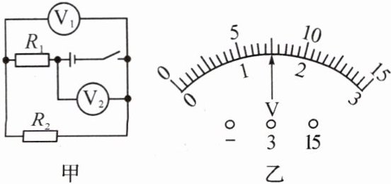 5. (2024·开封龙亭区一模)如图甲所示的电路,当闭合开关后两只电压表的指针偏转均如图乙所示,则电源电压是