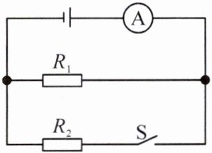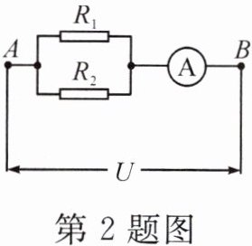2. 电路如图所示,$ R_{1} = 6 \, \Omega $,$ R_{2} = 12 \, \Omega $,电流表示数为 $ 0.3 \, A $,则通过 $ R_{1} $ 和 $ R_{2} $ 的电流之比为 ,