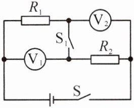 。若将图中电压表 $ V_{1} $、$ V_{2} $ 分别换成电流表 $ A_{1} $、$ A_{2} $,开关 $ S $ 闭合、$ S_{1} $ 断开时,电流表 $ A_{1} $、$ A_{2} $ 示数之比 $ I_{1} : I_{2}= $ 3:1