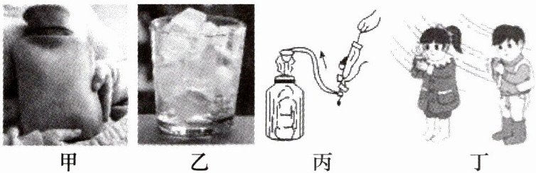 B.乙:冰化水。一块$0^{\circ}C$的冰熔化成$0^{\circ}C$的水后,温度不变,内能不变