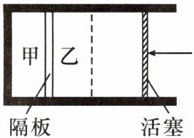 14. (双选)(2024·潍坊)如图所示,用气缸、固定隔板和活塞密闭甲、乙两部分气体,气缸和活塞均不导热,隔板导热良好。迅速将活塞向左推至图中虚线位置并固定,静置一段时间。下列说法正确的是(