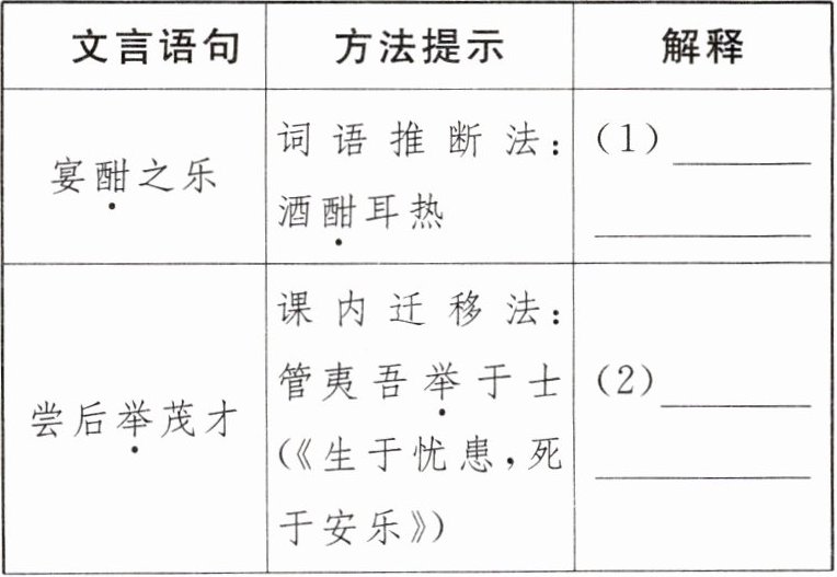 12. 根据语境,参考方法提示,解释下列加点词语的意思。(3分)