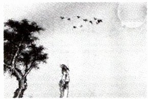 2. “一切景语皆情语。”小文同学根据本诗的前两联绘制出了右图(右上角是明月,明月的左边是一群大雁),但其中“一群大雁”的场景不合诗意,请你向小文建议应该怎样修改,并说明理由。