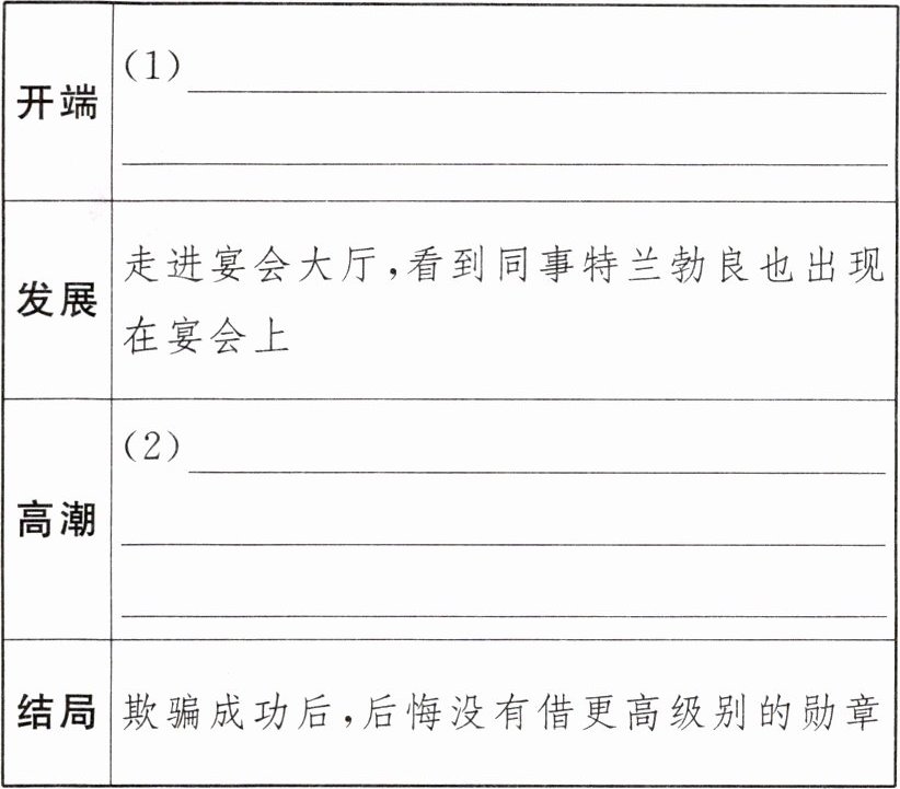 4. (☆课后习题一变式)小说的情节跌宕起伏,请用简洁的语言将表格中的空缺处补充完整。(4分)