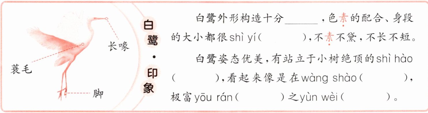 1 根据拼音补充“白鹭·印象”卡,并完成练习。