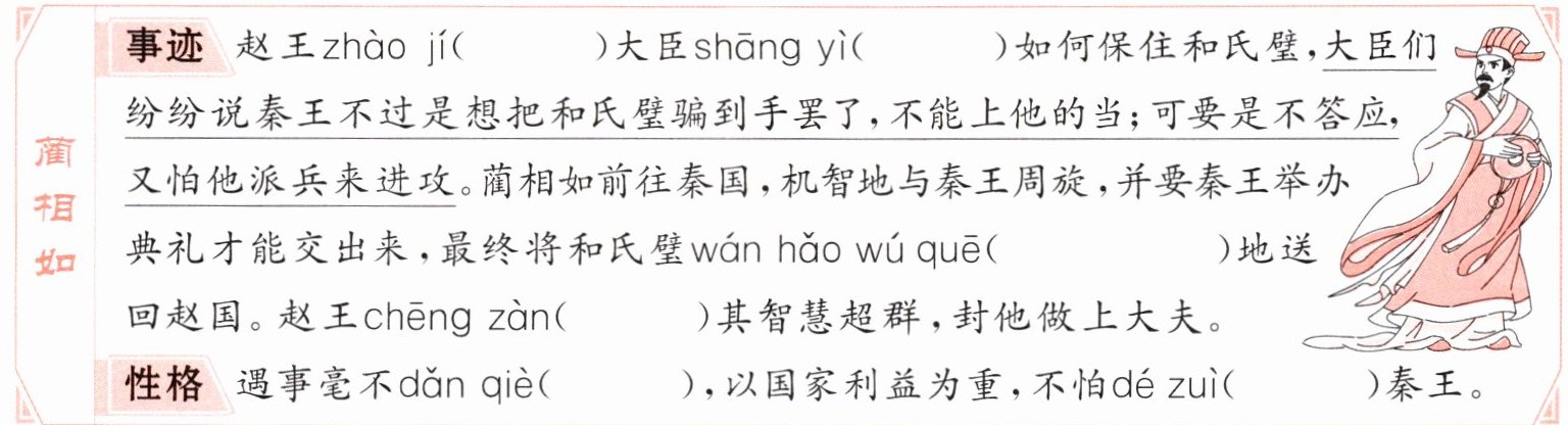 2 读了“完璧归赵”的故事,越越给蔺相如做了一张人物卡。读一读,完成练习