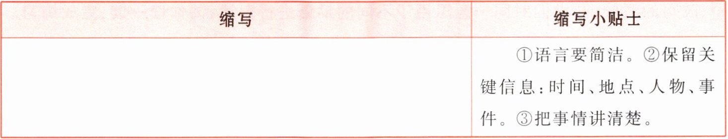 (1)通过上面的对话可知,缩写故事的方法有摘录、