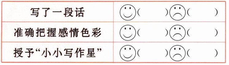 (3)从上面的词语中选择一个写一段话,并请同桌用“√”对你所写的内容进行评价。