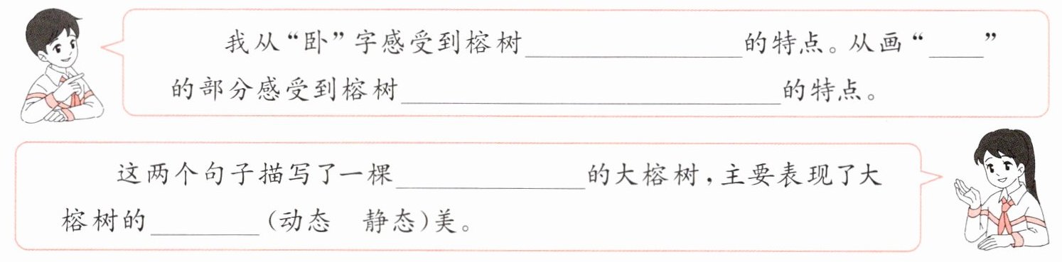(2)关注细节描写,感受榕树的特点,补全对话。