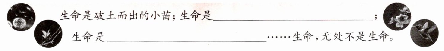 (1)在本文作者巴金眼中无处不是生命。请从图片中寻找生命的踪迹,照样子写一写。