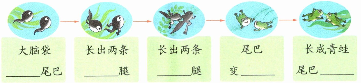 四、新思维逻辑梳理 小蝌蚪是怎样变成青蛙的?结合课文内容填一填。