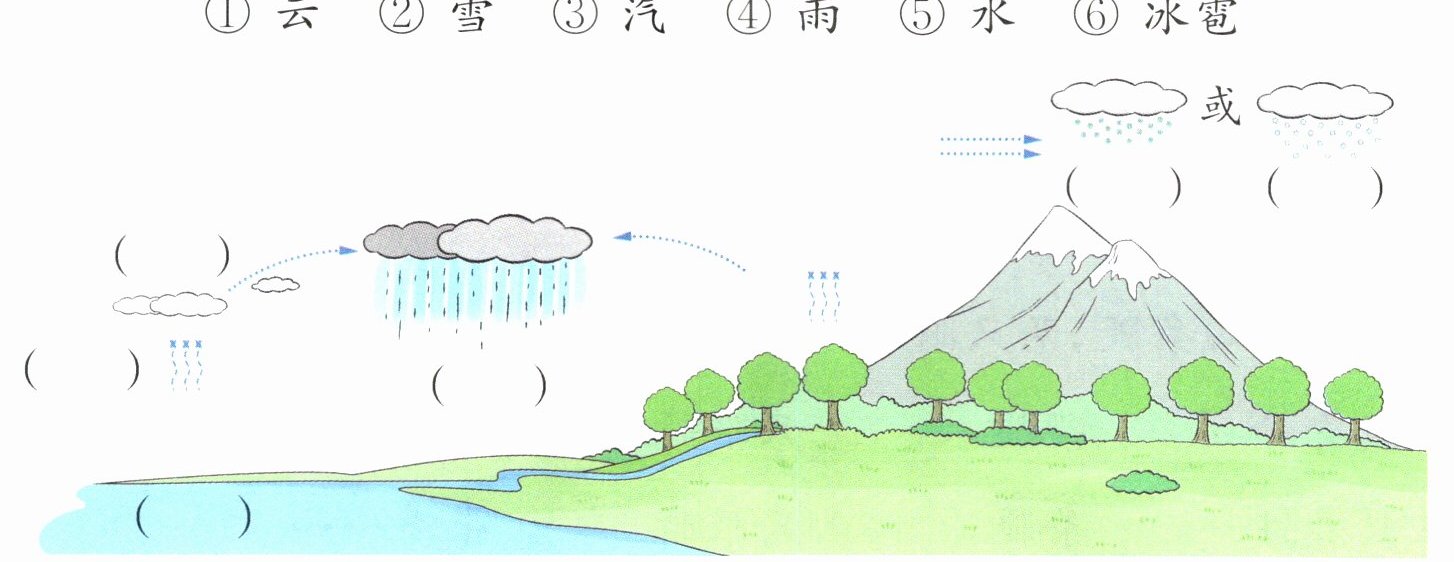 ① 云 ② 雪 ③ 汽 ④ 雨 ⑤ 水 ⑥ 冰雹