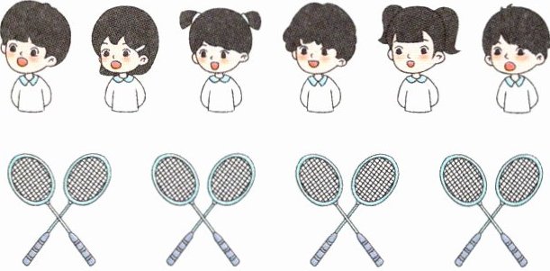 5. 他们都打羽毛球,球拍(够 不够)。(圈一圈)