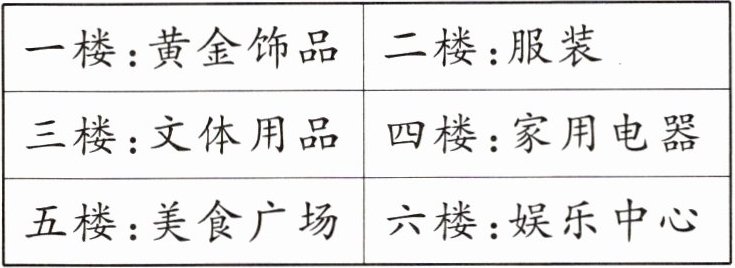 5. 新情境 真实生活 笑笑和爸爸、妈妈去商场,他们在一楼看到楼层商品分布如下。