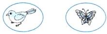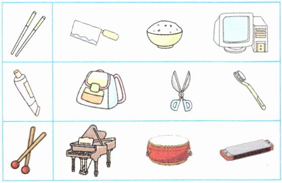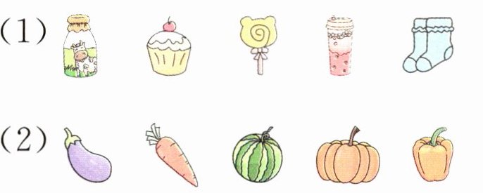 1. 圈出每行中不同类的物品。