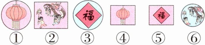 6. (咸阳礼泉县期末改编)快过年了,把下面印有春节元素的卡片分一分。(填序号)