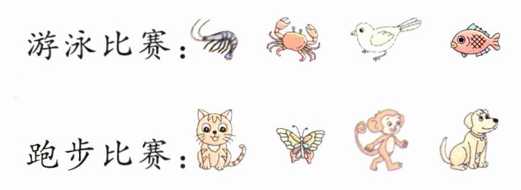 2. 动物运动会,请把每项比赛中不适合参赛的动物圈出来。