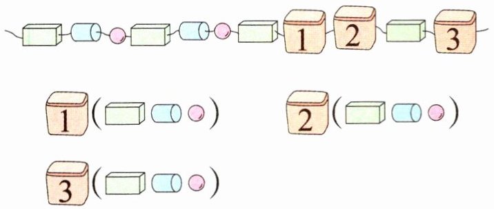 前面已经有三组“长方体、圆柱、球”,接着看盒子$1$,它前面是长方体,按照“长方体、圆柱、球”的顺序,盒子$1$应是圆柱;